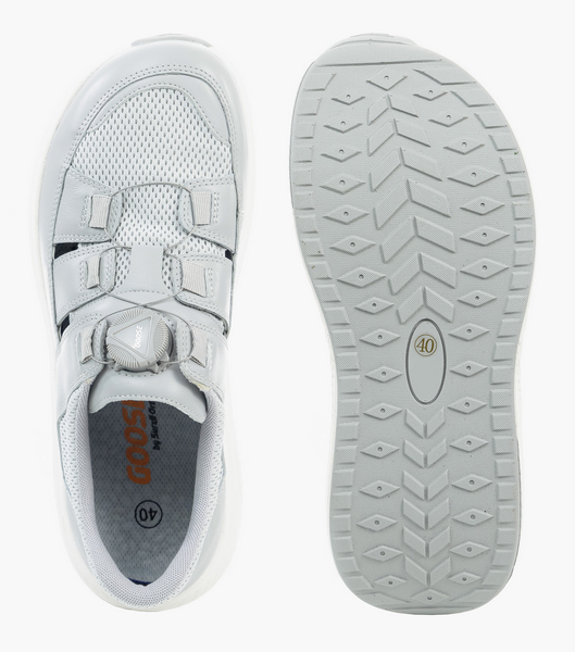 Особенностью моделей GOOSE является увеличенный мыс и эргономичная колодка. При этом внешний вид кроссовок выглядит стильно, добавляя вашему образу свежести и собранности. Обувь подойдет при повышенной полноте стопы, деформациях пальцев и суставов, при Hallux Valgus. Кроссовки в стиле спорт-кэжуал это отличный вариант для повседневных активностей в ритме города. Стопа чувствует себя свободно: пальцы не сдавлены, исчезают болезненность и дискомфорт в ногах. Плотный задник предотвращает завал стопы, а анатомическая стелька поддерживает своды. Верх кроссовок выполнен из сетчатого текстиля и натуральной кожи, что позволяет стопам дышать, предотвращая потливость. Дополняет конструкцию система быстрой шнуровки (Боа). Благодаря этому можно адаптировать посадку по стопе и фиксировать обувь за секунды. Амортизирующая подошва с легким перекатом поглощает ударные вибрации и равномерно распределяет нагрузку на суставы, существенно облегчая усталость. Протектор из резины способствует устойчивости на гладких поверхностях.